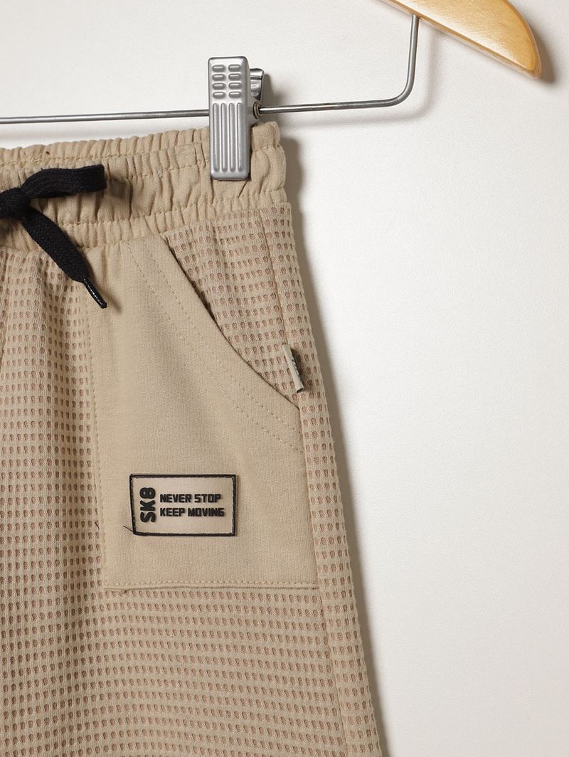 Bermuda infantil para menino desenvolvida em moletinho texturizado, um tecido leve e confortável. Possui cós elástico com cordão decorativo, bolsos frontais funcionais e barra com acabamento simples. A garantia de comodidade e conforto para o dia a dia dos pequenos!\n\nTecido: Moletinho Texturizado\nComposição: 100% algodão