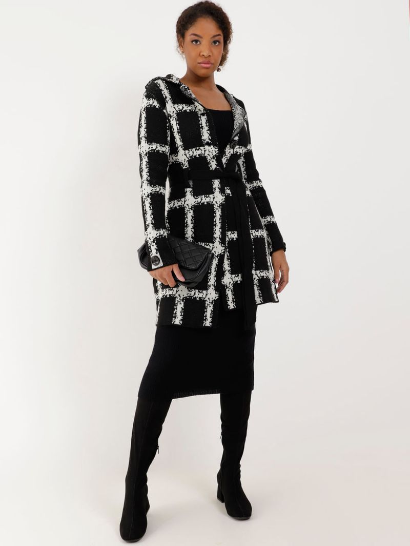 Casaco Alongado de Tricot Feminino Casaco feminino desenvolvido em tricot de pontos fechados com padronagem xadrez. Possui comprimento alongado, mangas longas, capuz e bolsos frontais funcionais. Seu fechamento é feito por botões de casa na parte frontal. Casaco feminino confeccionado em tricot macio de pontos fechados, apresenta diferencial de padronagem xadrez, um clássico que está sempre presente nas peças de inverno. O modelo possui comprimento alongado, mangas longas, fechamento por botões de casa e faixa para amarração na cintura, além de possuir capuz. Essencial para compor looks modernos para os dias frios da estação, aposte! Combine com Blusas Manga Longa, Calças Jeans e Coturnos. Material: Tricot Composição: 100% acrílico Marca: Oliveira Malhas Medidas da modelo: 1,78 de altura, 65kg e usa tamanho Único. Em decorrência do uso do flash, as peças podem sofrer alteração de cor.