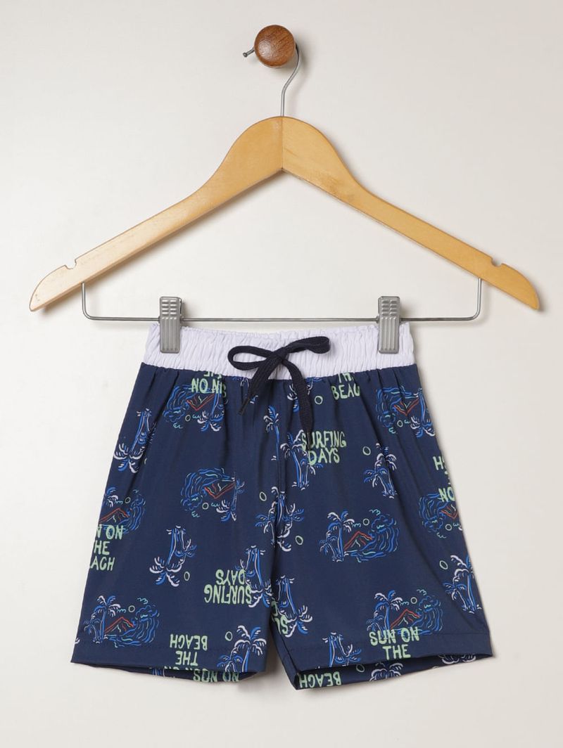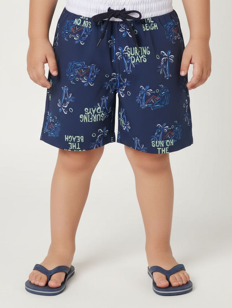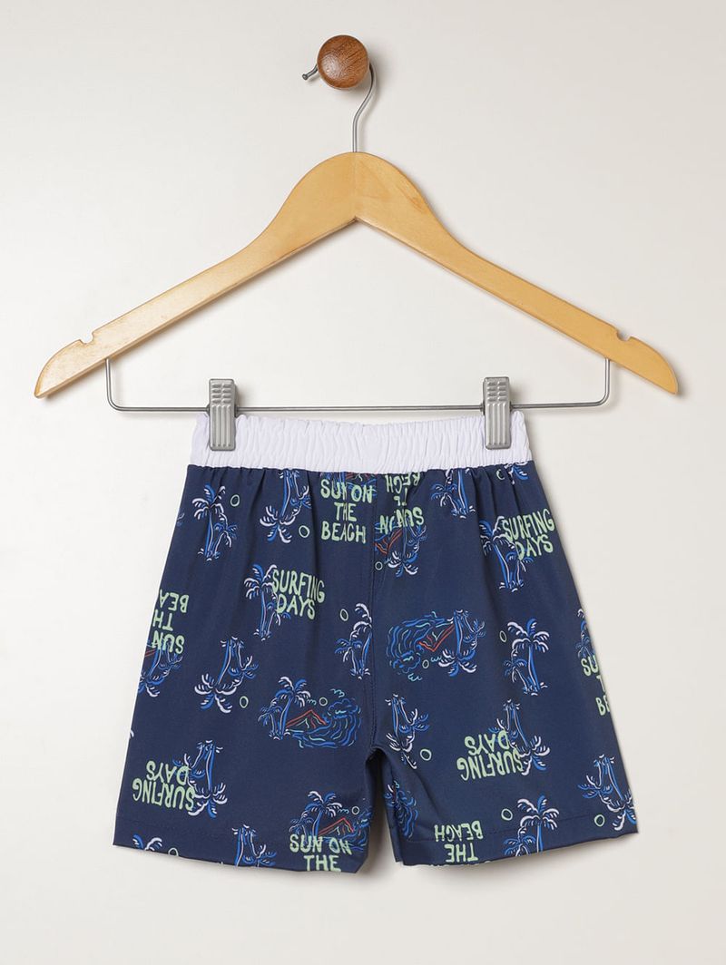 Bermuda infantil para menino confeccionada em microfibra leve e macia, com toque suave e excelente caimento. Possui cós elástico em tom contrastante com cordão decorativo, garantindo praticidade e ajuste confortável. Conta com acabamentos simples e tecido com elasticidade que proporciona liberdade de movimento. O diferencial está na estampa tropical, que traz um visual moderno e descontraído. Uma peça versátil e confortável, perfeita para acompanhar os meninos em momentos de lazer e diversão!\n\nTecido: Microfibra\nComposição: 92% poliéster, 08% elastano
