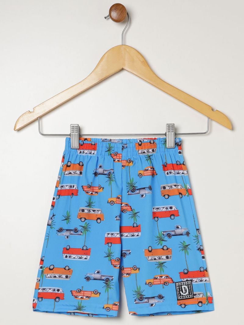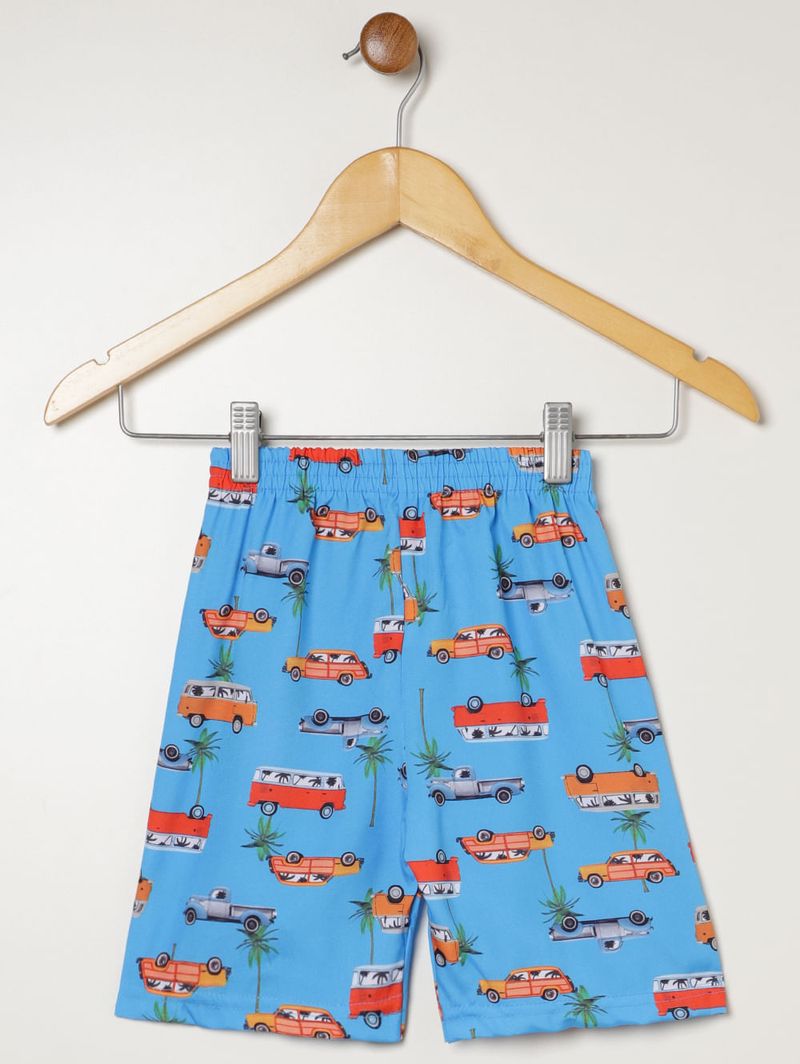 Bermuda infantil para menino desenvolvida em microfibra, um tecido leve e com pouco elastano. Possui cós elástico e barra com acabamento simples. O seu diferencial fica por conta da estampa em toda a extensão da peça que a deixa mais bonita. A peça perfeita para garantir conforto nos momentos de lazer dos pequenos!\n\nTecido: Microfibra\nComposição: 94% poliéster, 06% elastano