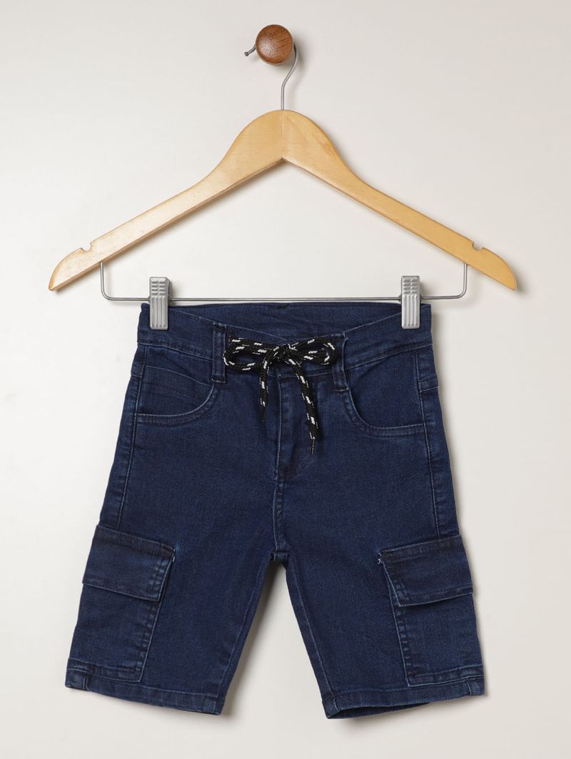Bermuda Jeans Cargo Infantil Para Menino - AZUL