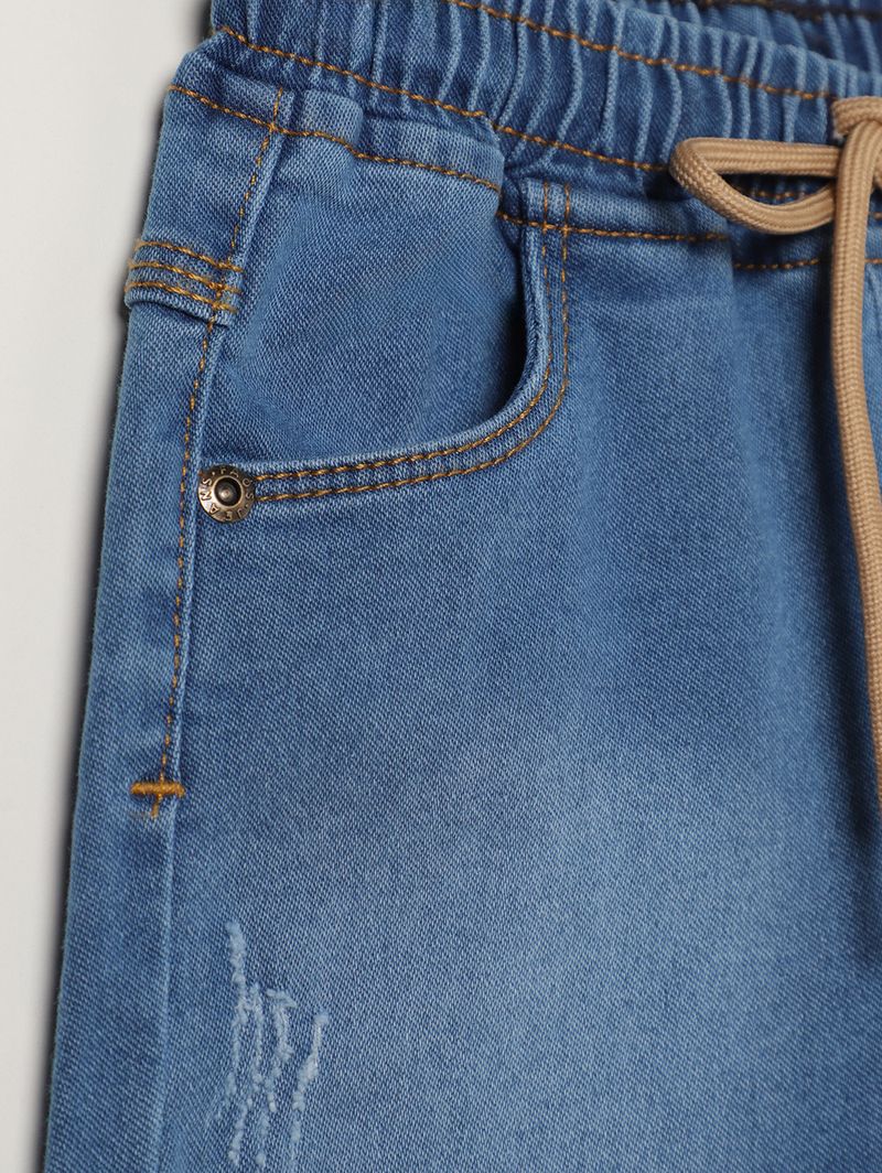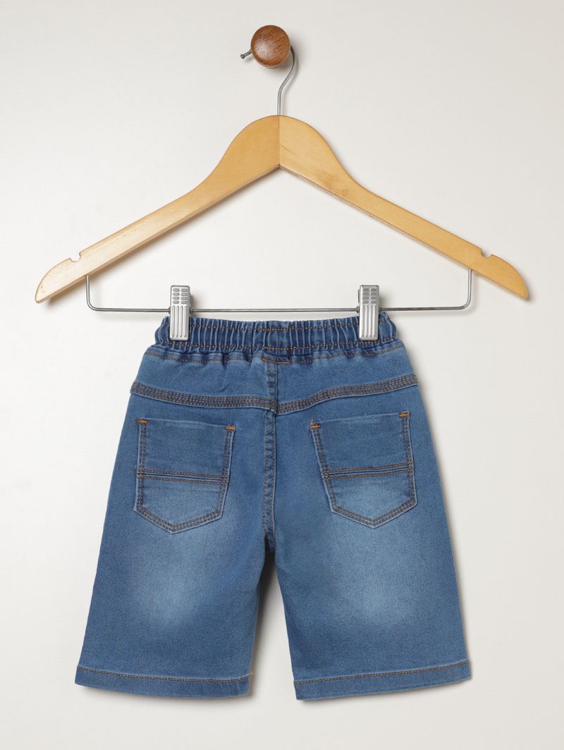 Bermuda infantil para menino desenvolvida em jeans com elastano, garantindo conforto, durabilidade e liberdade de movimento para acompanhar todas as aventuras do dia. Possui cós elástico com cordão funcional, que facilita o ajuste e deixa o vestir ainda mais prático. Conta com bolsos frontais e posteriores funcionais e barra com acabamento simples, compondo um visual moderno e versátil. Os puídos na parte frontal acrescentam um toque descolado, deixando a peça ainda mais estilosa. Uma bermuda perfeita para acompanhar cada descoberta com conforto, estilo e muita personalidade!\n\nTecido: Jeans\nComposição: 80% algodão, 18% poliéster, 02% elastano