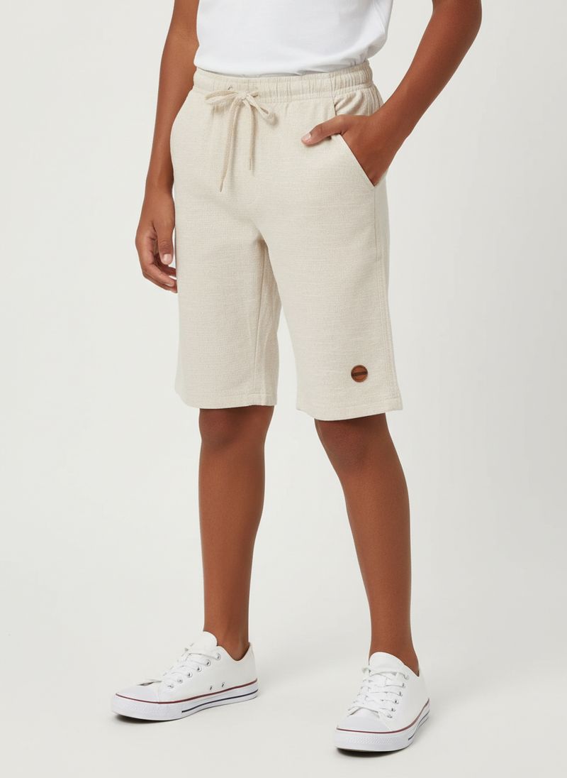 Bermuda juvenil para menino desenvolvida em tecido plano com linho flame, que combina toque leve, aparência natural e caimento macio, proporcionando conforto e estilo nos dias mais quentes. Possui cós elástico com cordão decorativo, que traz praticidade e um visual moderno, além de bolsos frontais funcionais e barra com acabamento simples. Uma peça versátil e fresca, perfeita para compor looks casuais e descontraídos com um toque sofisticado!