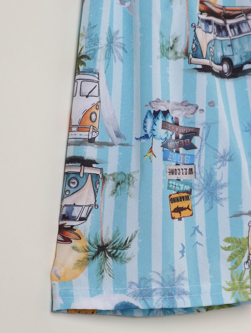 Bermuda infantil para menino confeccionada em microfibra leve e confortável, proporcionando liberdade de movimento para as brincadeiras do dia a dia. Conta com cós elástico e cordão decorativo, além de acabamentos simples que garantem um visual moderno e prático. O destaque fica por conta da estampa moderna aplicada por toda a extensão, trazendo estilo e personalidade ao look dos pequenos!