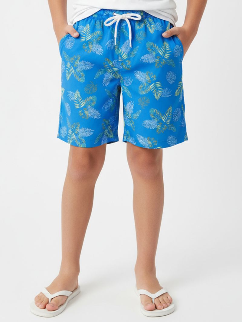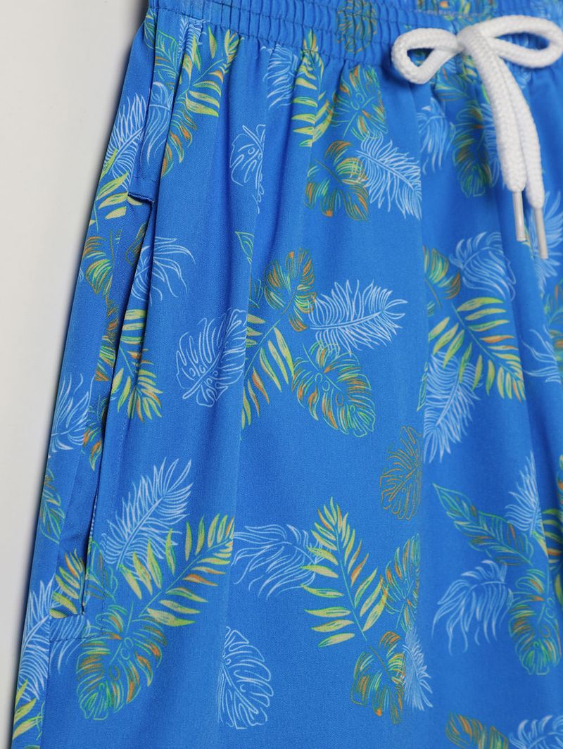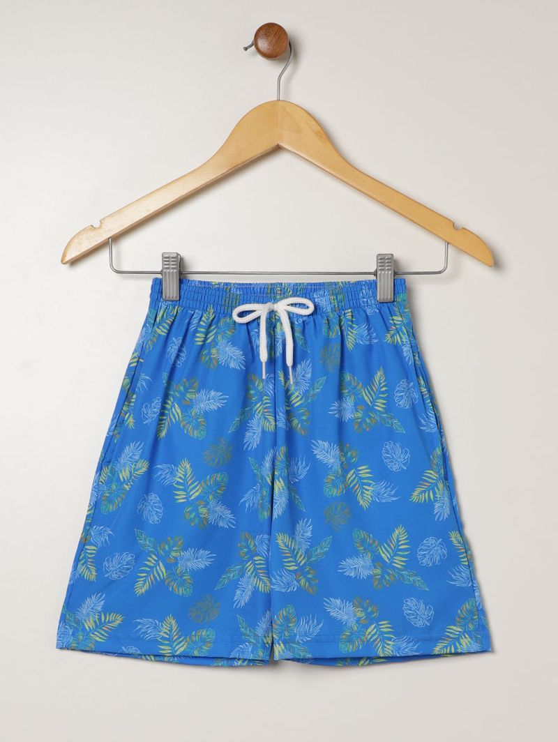 Bermuda juvenil para menino ideal para garantir conforto e praticidade no dia a dia. Desenvolvida em microfibra com elastano, oferece leveza, toque macio e liberdade de movimentos, perfeita para acompanhar a rotina com bem-estar. Possui cós elástico com cordão decorativo que facilita o ajuste, bolsos frontais funcionais e barra com acabamento simples. A estampa tropical traz um visual alegre e moderno, tornando a peça ainda mais versátil para compor looks confortáveis e descontraídos!\n\nTecido: microfibra\nComposição: 90% poliéster, 10% elastano