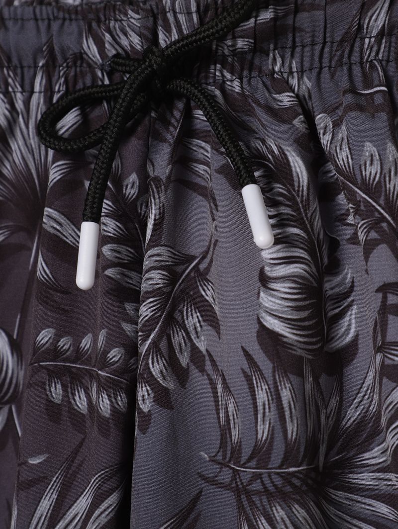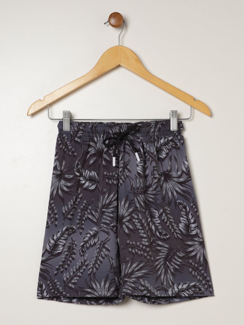 Bermuda juvenil para menino confeccionada em microfibra leve e confortável, oferecendo liberdade de movimento para o uso diário. Possui cós elástico com cordão decorativo e acabamentos simples, garantindo praticidade e um visual moderno. O grande destaque da peça é sua estampa tropical por toda a extensão, trazendo personalidade e estilo ao look dos adolescentes!\n\nTecido: Microfibra\nComposição: 92% poliéster, 08% elastano