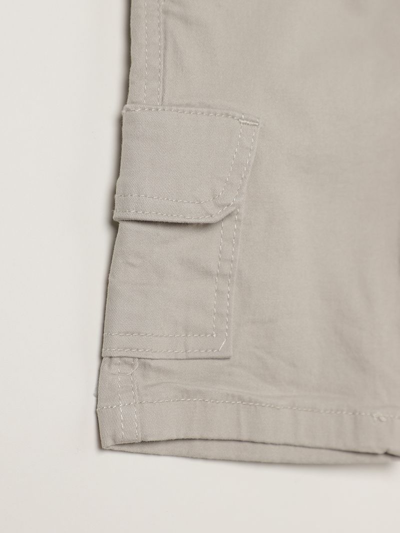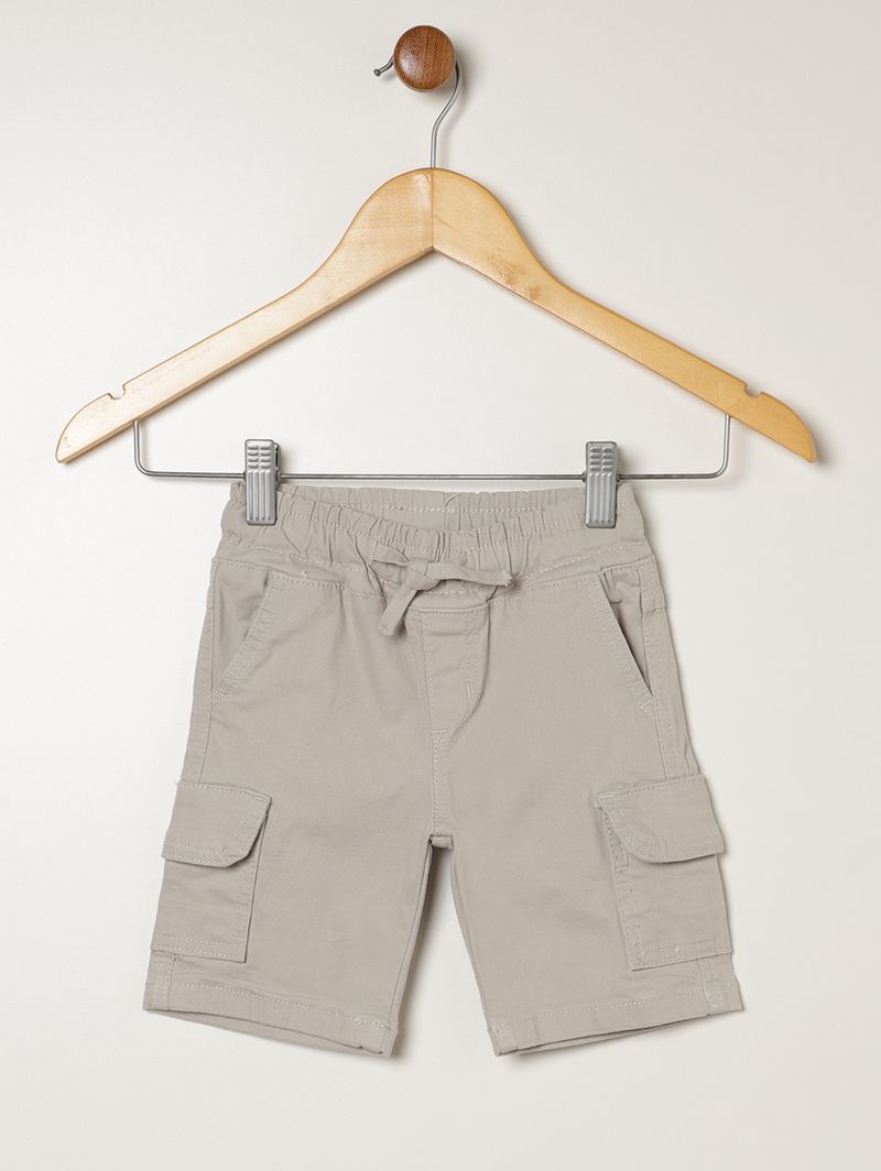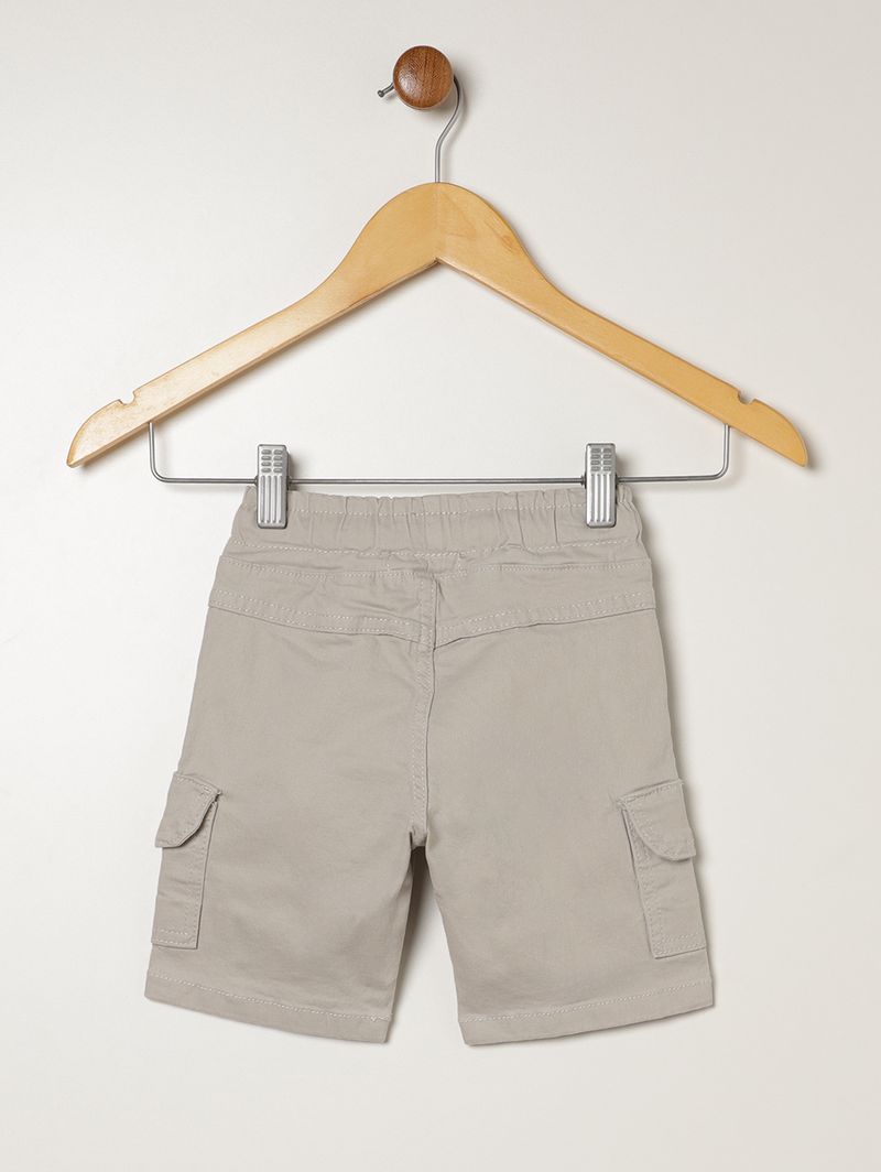 Bermuda infantil para menino desenvolvida em sarja, um tecido de algodão com uma pequena porcentagem de elastano que confere maior conforto. Possui cós elástico com cordão funcional para ajuste, bolsos frontais funcionais, bolsos laterais cargo e barra com acabamento simples. A peça que une estilo e comodidade em todos os momentos!\n\nTecido: Sarja\nComposição: 97% algodão, 03% elastano