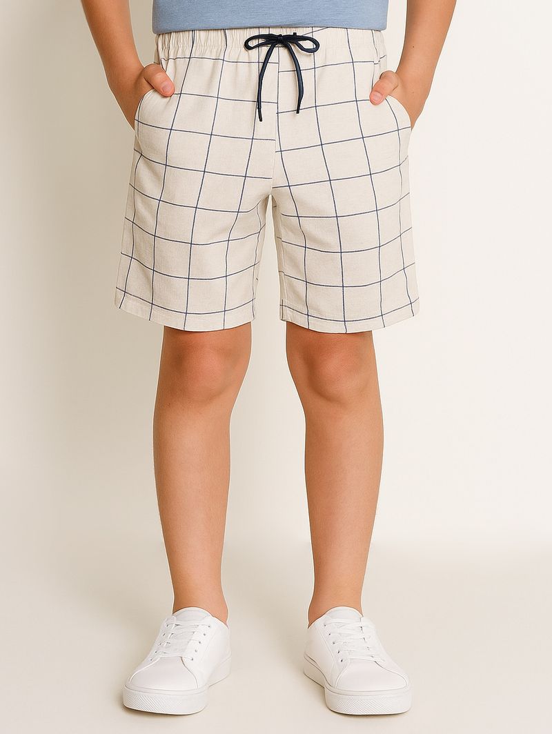 Bermuda Sarja Xadrez Infantil Para Menino - AREIA