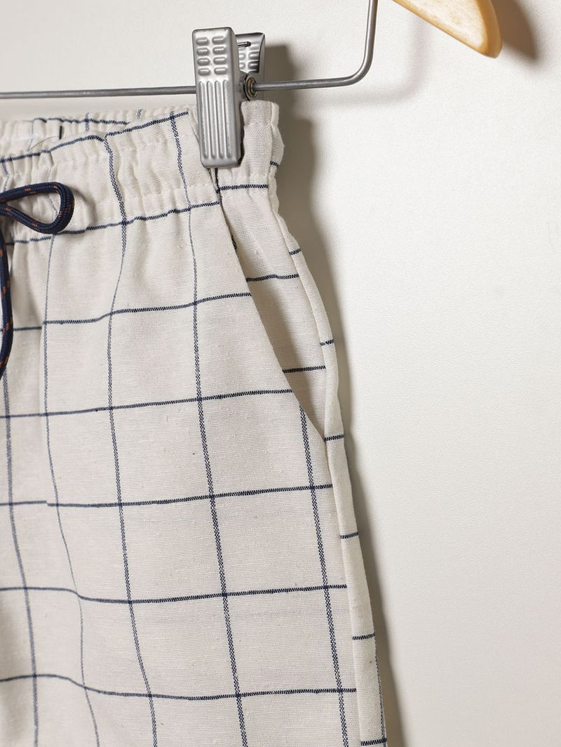 Bermuda infantil para menino desenvolvida em sarja um tecido encorpado e sem elasticidade. O modelo apresenta cós elástico com cordão funcional para ajuste, bolsos frontais e um bolso posterior, todos funcionais, além de barra com acabamento simples. O seu diferencial fica por conta da estampa xadrez que deixa a peça mais bonita e com um toque casual. O seu pequeno bem vestido e elegante!\n\nTecido: Sarja\nComposição: 64% algodão, 36% poliéster