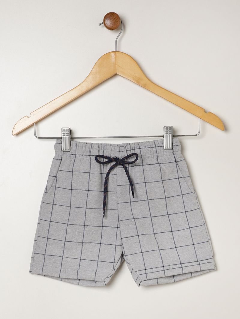 Bermuda infantil para menino desenvolvida em sarja um tecido encorpado e sem elasticidade. O modelo apresenta cós elástico com cordão funcional para ajuste, bolsos frontais e um bolso posterior, todos funcionais, além de barra com acabamento simples. O seu diferencial fica por conta da estampa xadrez que deixa a peça mais bonita e com um toque casual. O seu pequeno bem vestido e elegante!\n\nTecido: Sarja\nComposição: 64% algodão, 36% poliéster