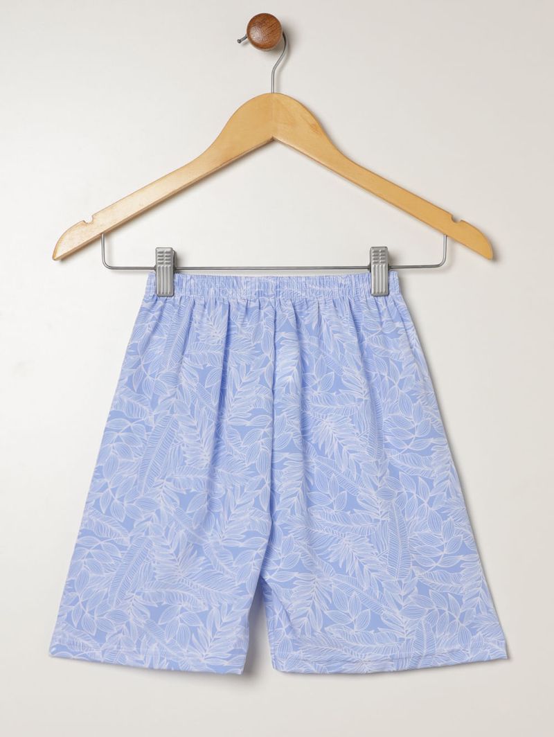 Bermuda juvenil para menino confeccionada em tactel com elastano, tecido leve e de secagem rápida que proporciona conforto, frescor e liberdade de movimento, ideal para os dias mais quentes. Possui cós elástico com cordão decorativo, bolsos frontais funcionais e barra com acabamento simples, garantindo praticidade e ótimo caimento. O diferencial fica por conta da estampa tropical em toda a extensão, que adiciona um toque divertido e moderno ao visual. Uma bermuda versátil e cheia de estilo, perfeita para momentos de lazer e combinações casuais!\n\nTecido: Tactel\nComposição: 90% poliéster, 10% elastano