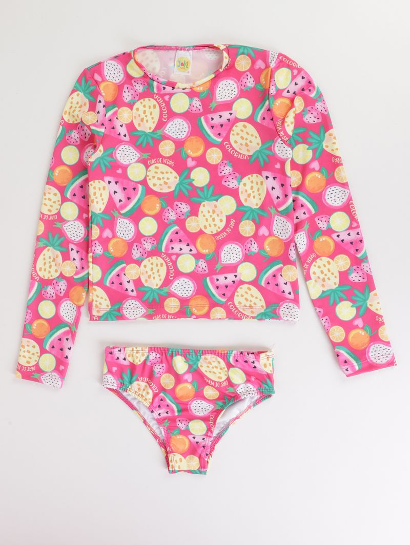 Biquíni Com Camiseta Uv Juvenil Para Menina- PINK