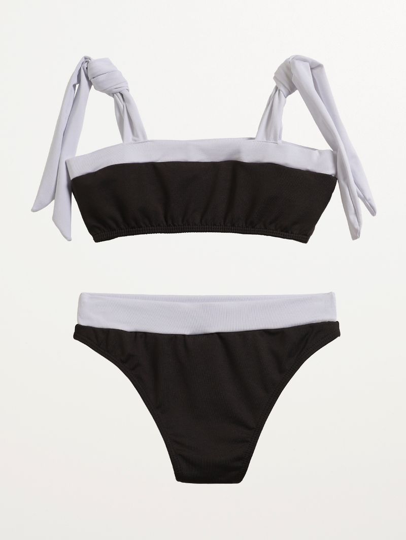 Biquíni Top Juvenil Para Menina - PRETO/BRANCO