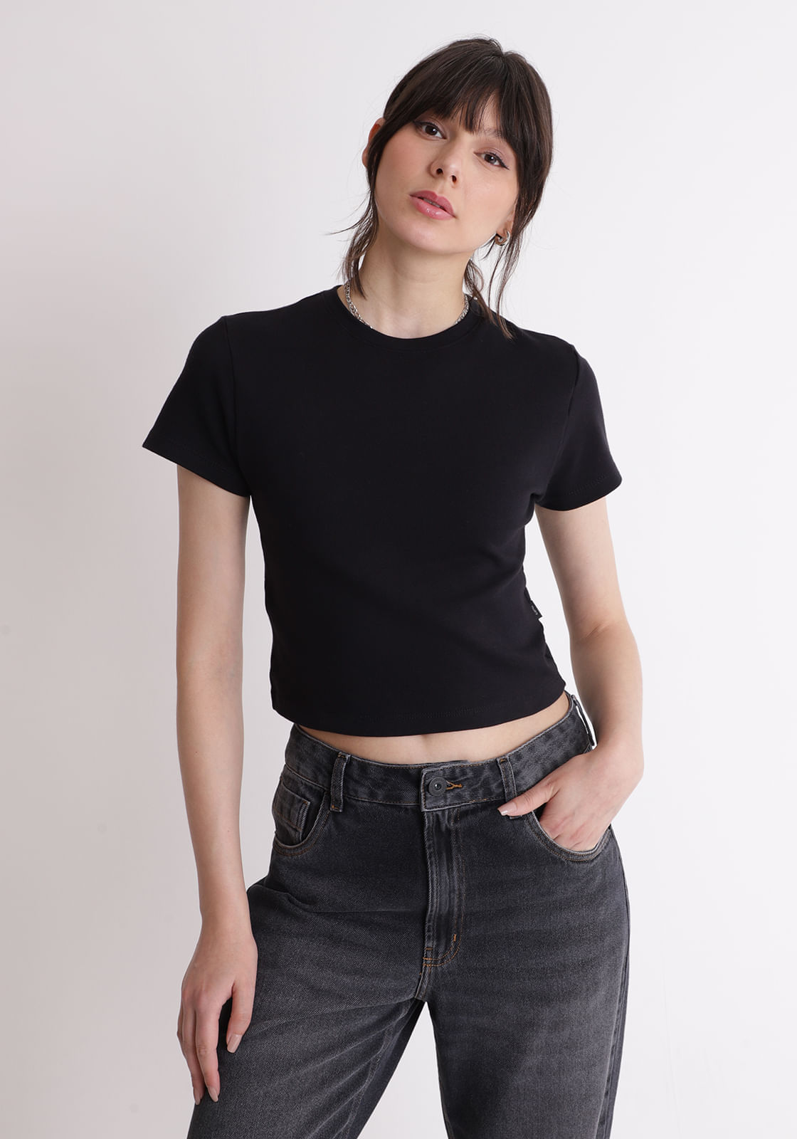 Blusa básica baby look Preta