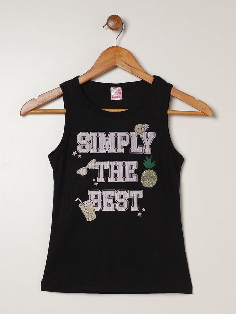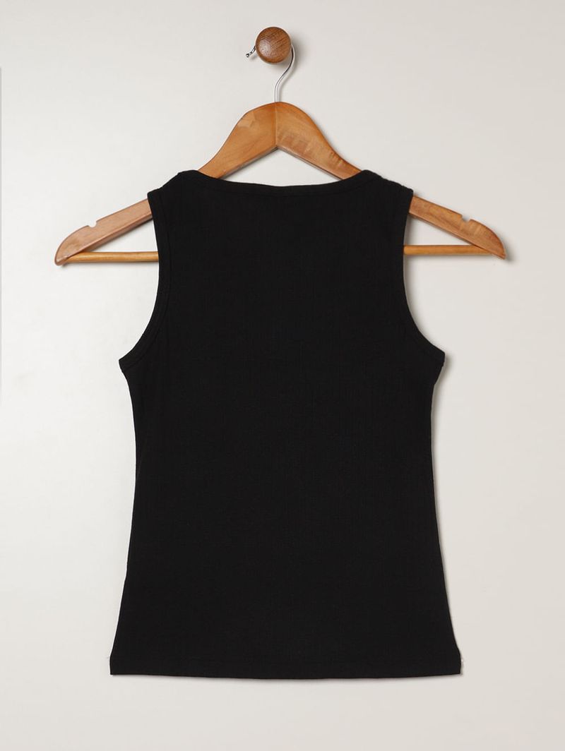 Blusa Canelada Regata Juvenil Para Menina- PRETO