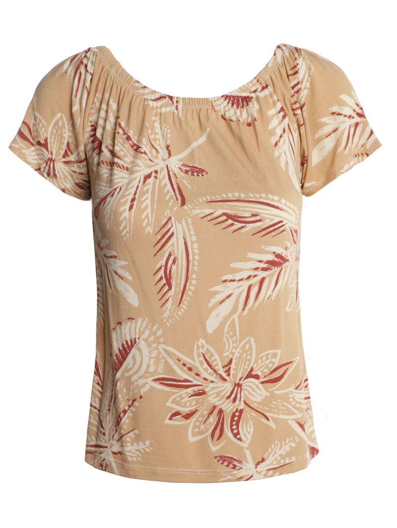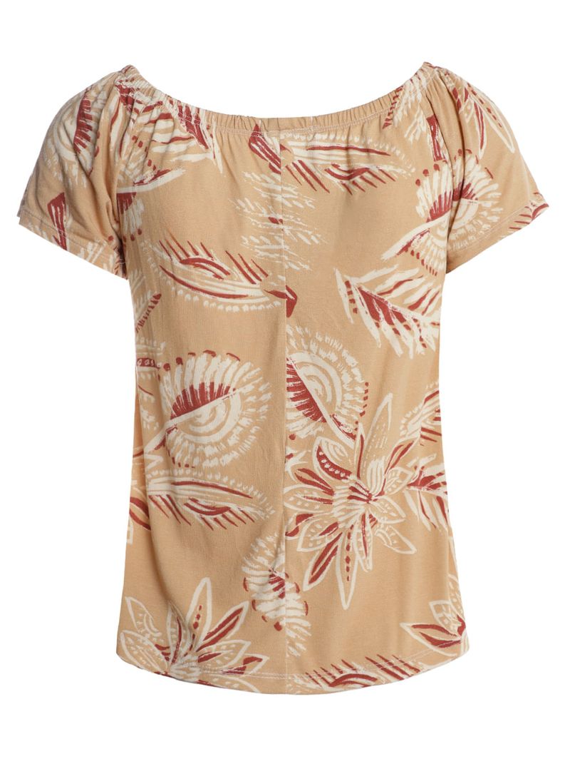 Blusa Ciganinha Malha Floral Feminina BEGE