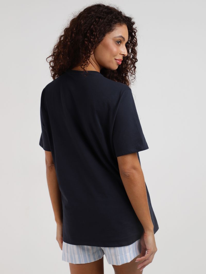 Feminino Blusas Blusa Com Bordados Manga Curta Autentique Feminina MARINHO
