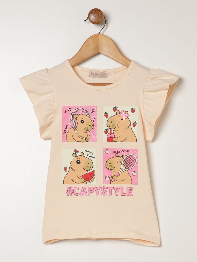 Blusa Cotton Manga Curta Infantil Para Menina- BEGE