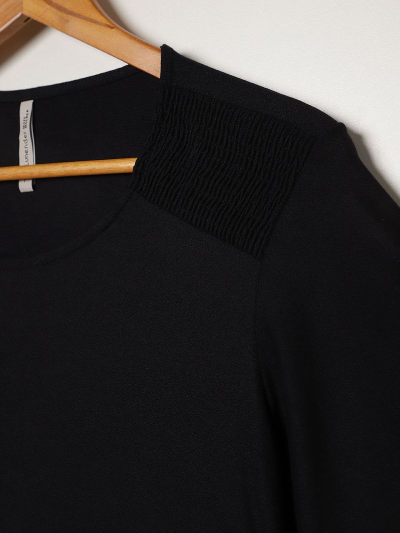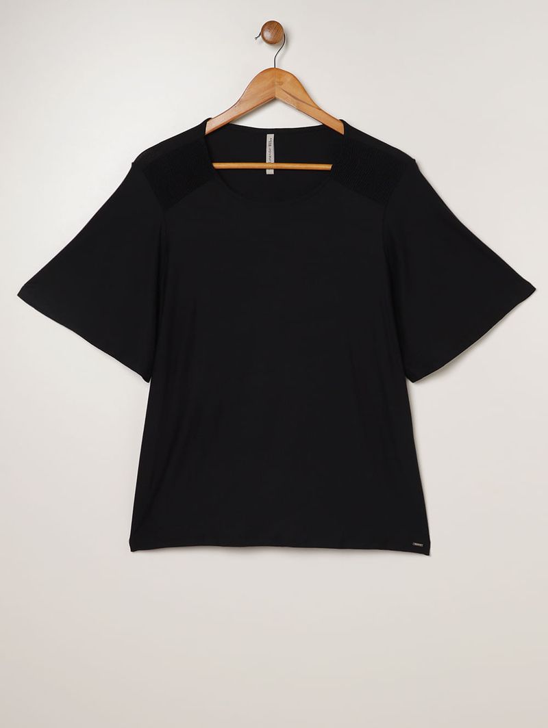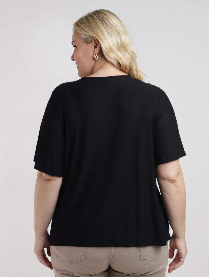 Blusa Crepe Manga Godê Plus Size Feminina PRETO