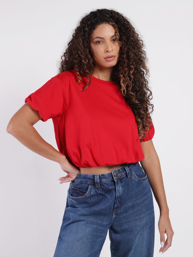 Blusa Cropped Manga Curta Autentique Feminina VERMELHO