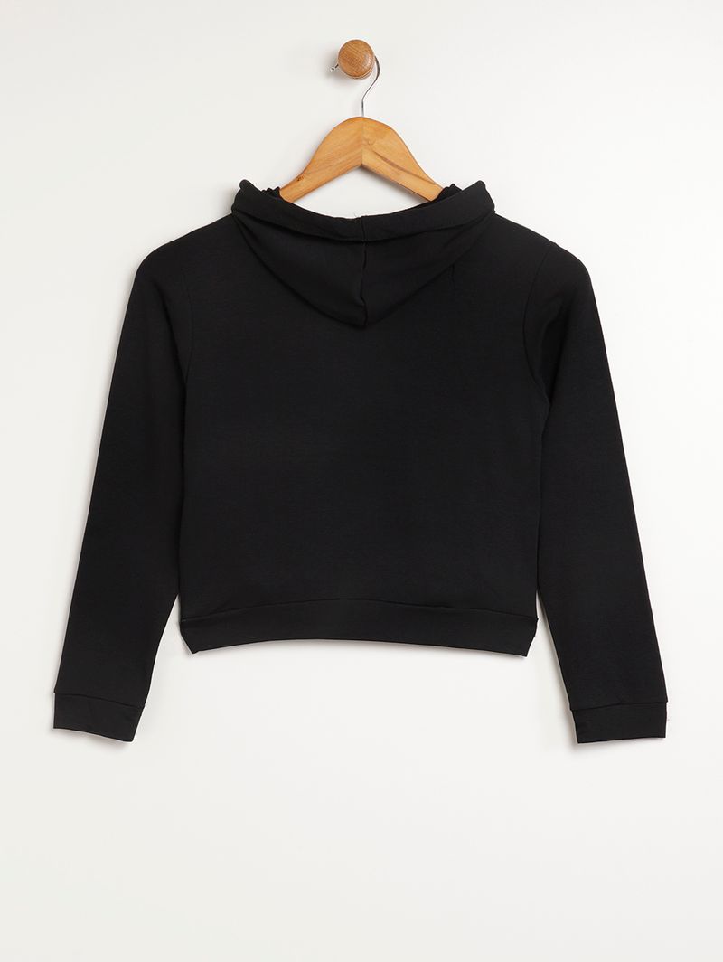 Blusa Cropped Manga Longa Juvenil Para Menina - PRETO