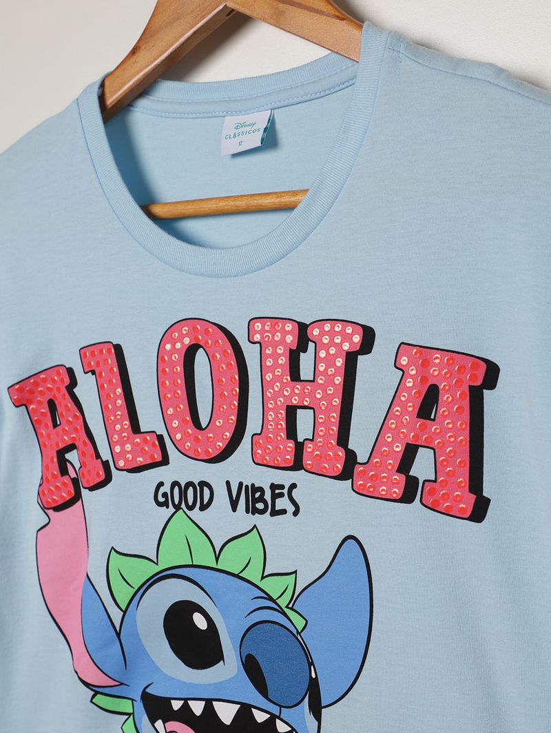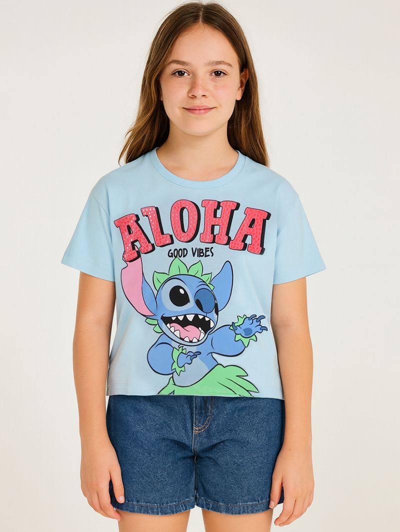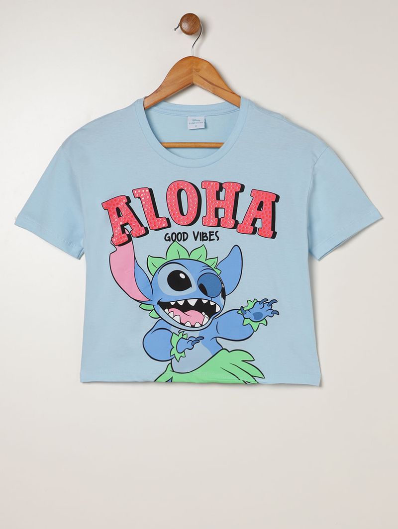 Blusa Cropped Stitch Disney Juvenil Para Menina- AZUL