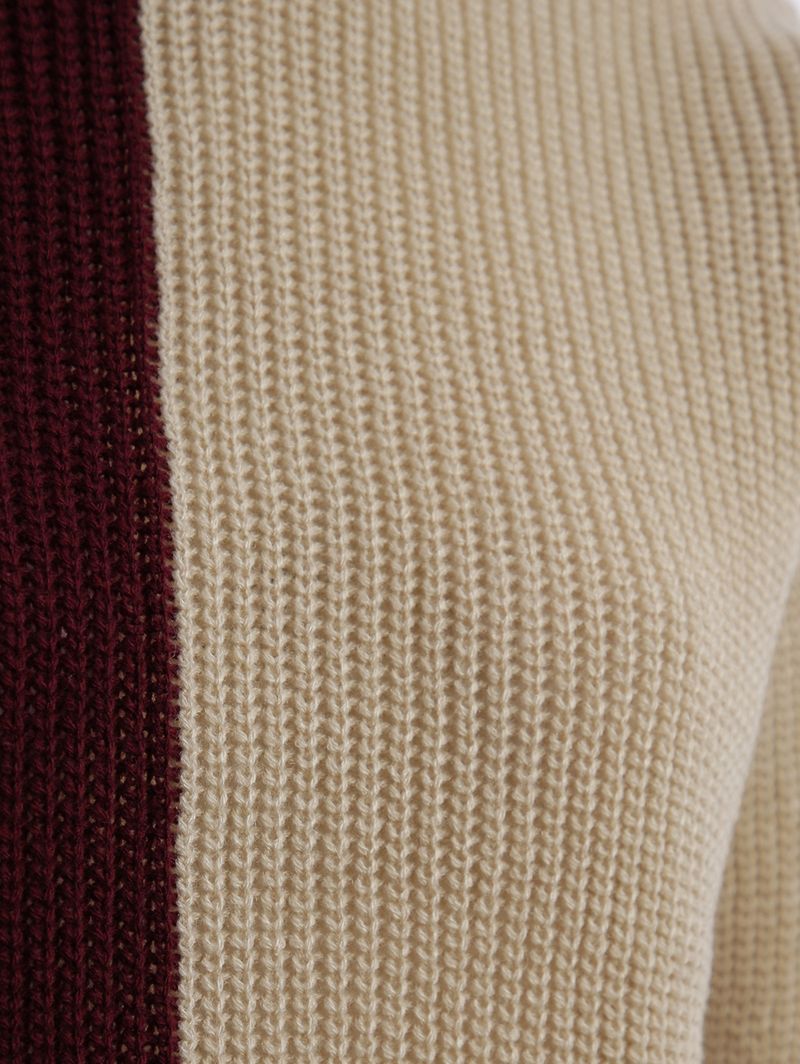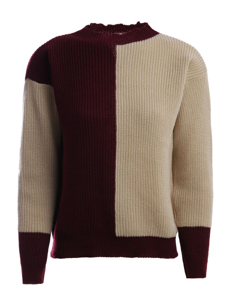 Blusa de Tricot Bicolor Feminina VINHO/VINHO/BEGE