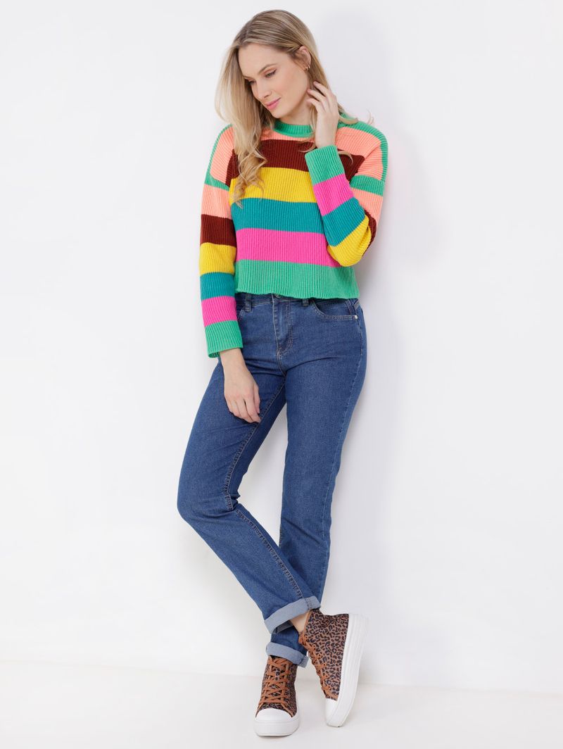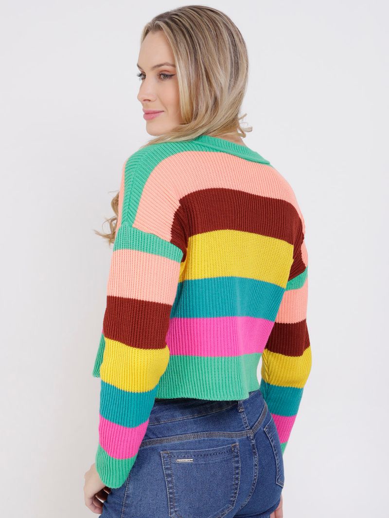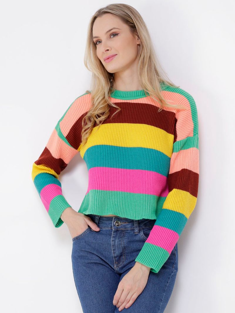 Código Pompéia 22485 Modelo Cropped Código Completo 10113302248503 Gênero Feminino Confecção Convencional Idade Adulto Manga Longa Gola Gola Redonda Tecido Tricot Cores Multicolorida, Verde