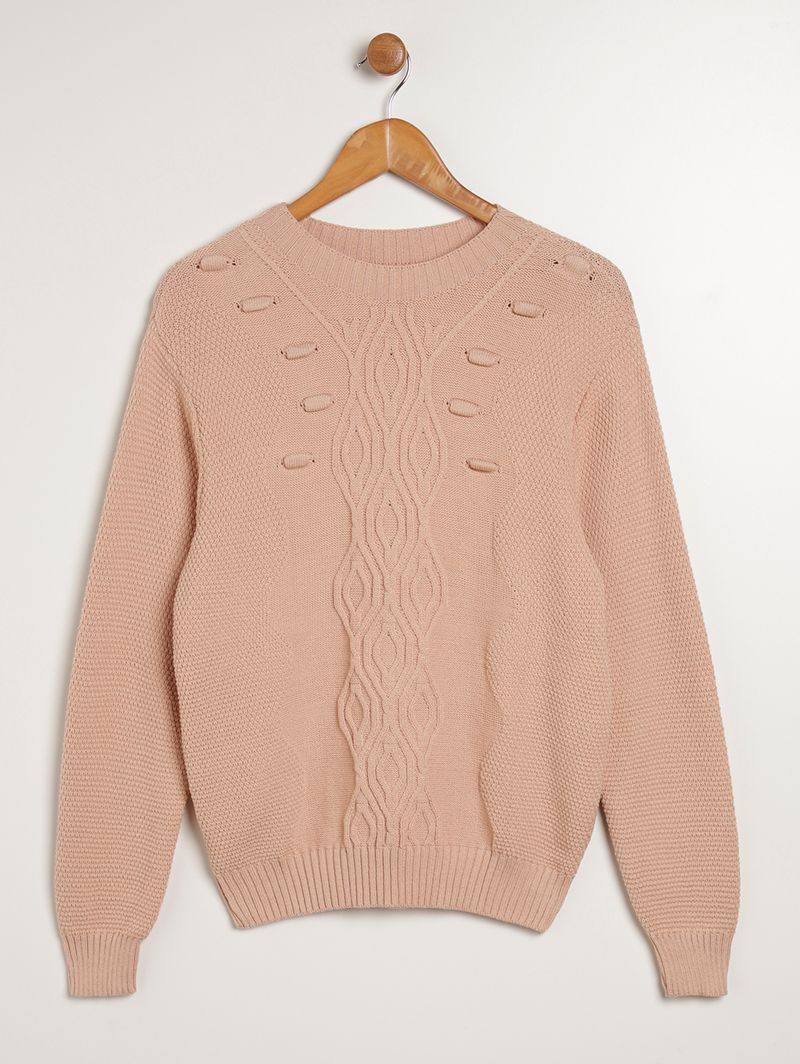 Blusa feminina desenvolvida em tricot de pontos fechados super macio e confortável. Possui gola redonda, mangas compridas com acabamento em punho e barra com acabamento canelado. Apresenta diferencial de texturas na parte frontal que deixam a peça muito mais bonita. Vista-se com o melhor que a moda pode te oferecer nesta estação! Combine com Calça Jeans e Mocassim .