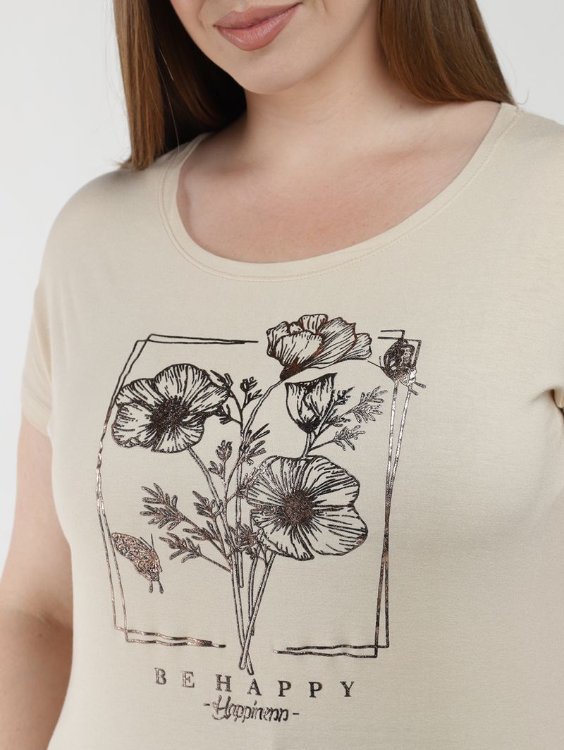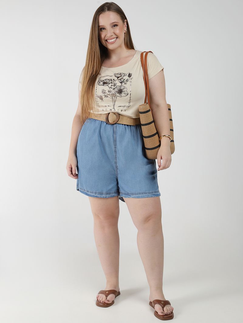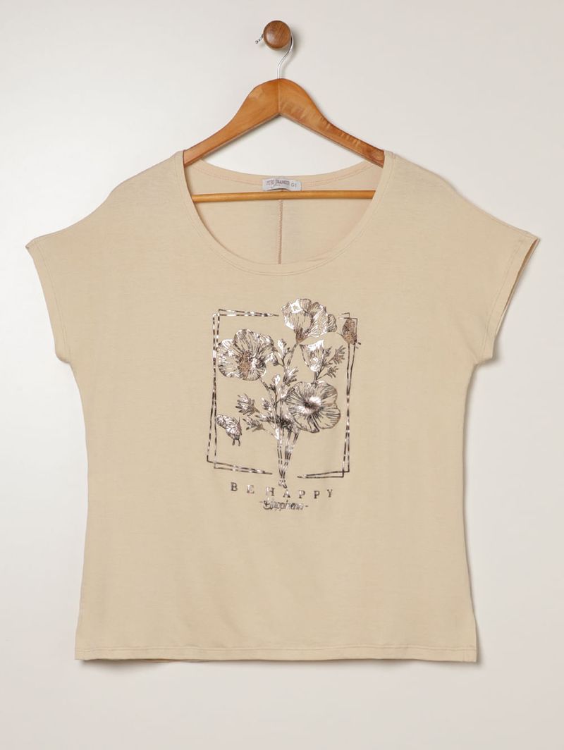 Blusa Floral Manga Curta Plus Size Feminina AREIA