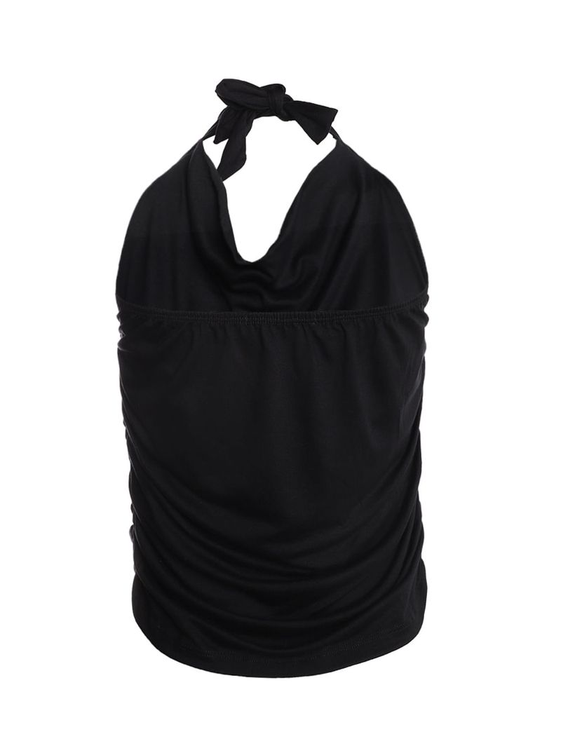Blusa feminina desenvolvida em malha de viscose e elastano que confere toque sutil e confortável. Possui modelagem frente única, característica por ser presa apenas na parte da frente do corpo. Apresenta amarração atrás do pescoço, elástico na parte posterior, franzido nas laterais e barra com acabamento simples. A peça perfeita para ser usada em dias quentes e em produções mais despojadas ou até sofisticadas!