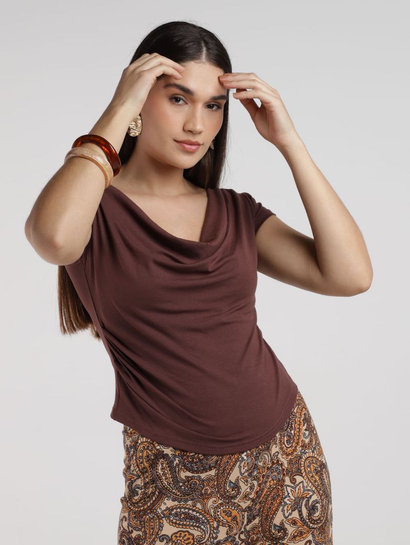Blusa Gola Babado Eagle Rock Feminina MARROM