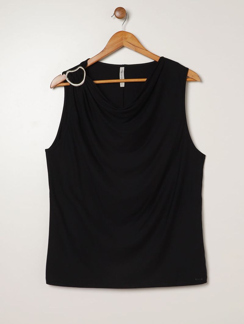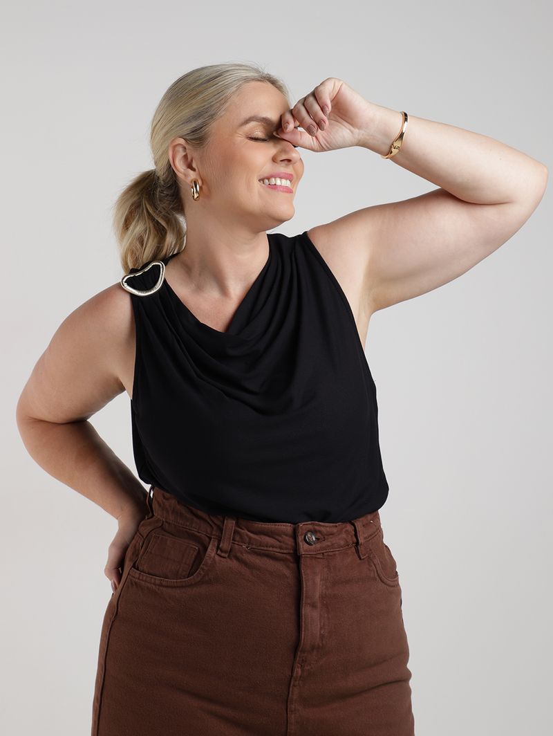 Blusa Gola Boba Com Aviamento Plus Size Feminina PRETO