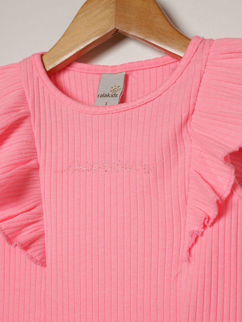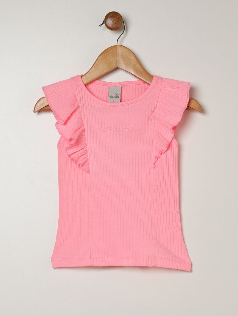 Blusa Malha Canelada Infantil Para Menina - ROSA