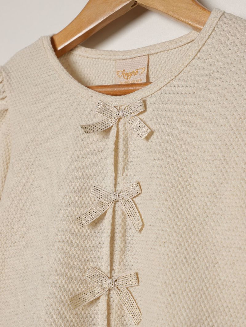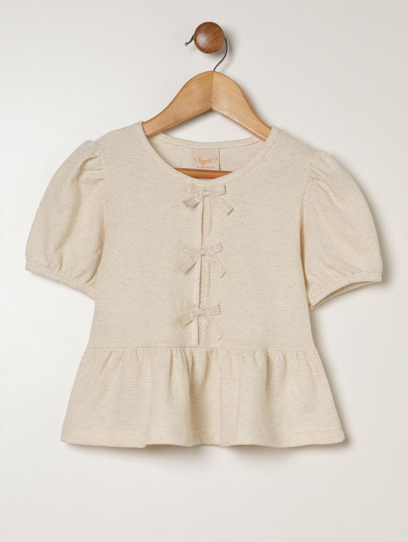 Blusa Malha Laços Infantil Para Menina - NATURAL