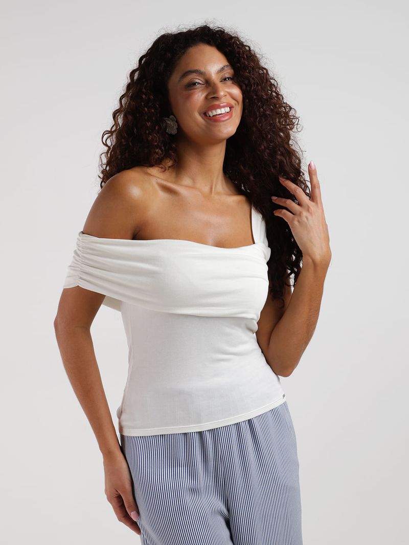 Blusa Malha Tricô Assimétrico Feminina OFF WHITE