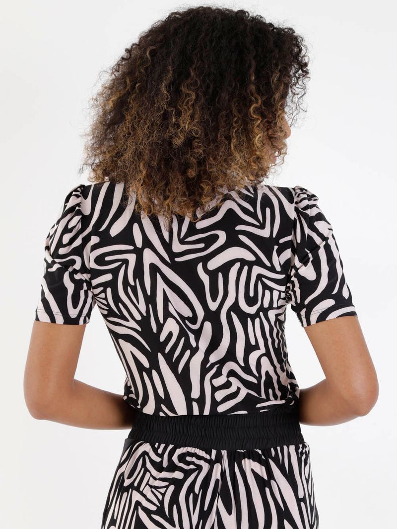 Blusa feminina desenvolvida em liganete. O modelo possui mangas curtas bufantes, decote "V" e barra simples com fenda nas laterais. Blusa feminina desenvolvida malha ligante, que vai promover frescor para os dias quentes da estação. O modelo apresenta estampa moderna e mangas curtas bufantes, um clássico que voltou para ficar e torna as produções delicadas. Possui diferencial de barra com fenda nas laterais. Peça chave para compor looks fashionistas para o dia a dia! Combine com Calças Jeans e Tênis Casual.