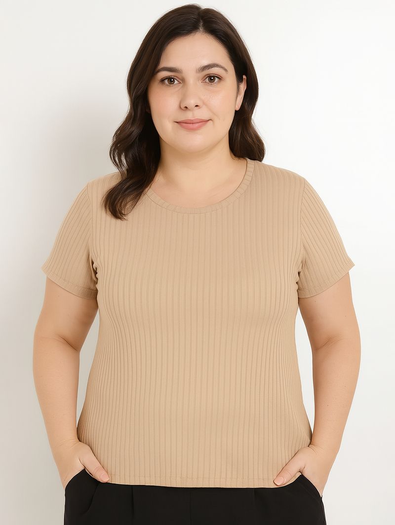 Blusa Manga Curta Autentique Plus Size Feminina BEGE