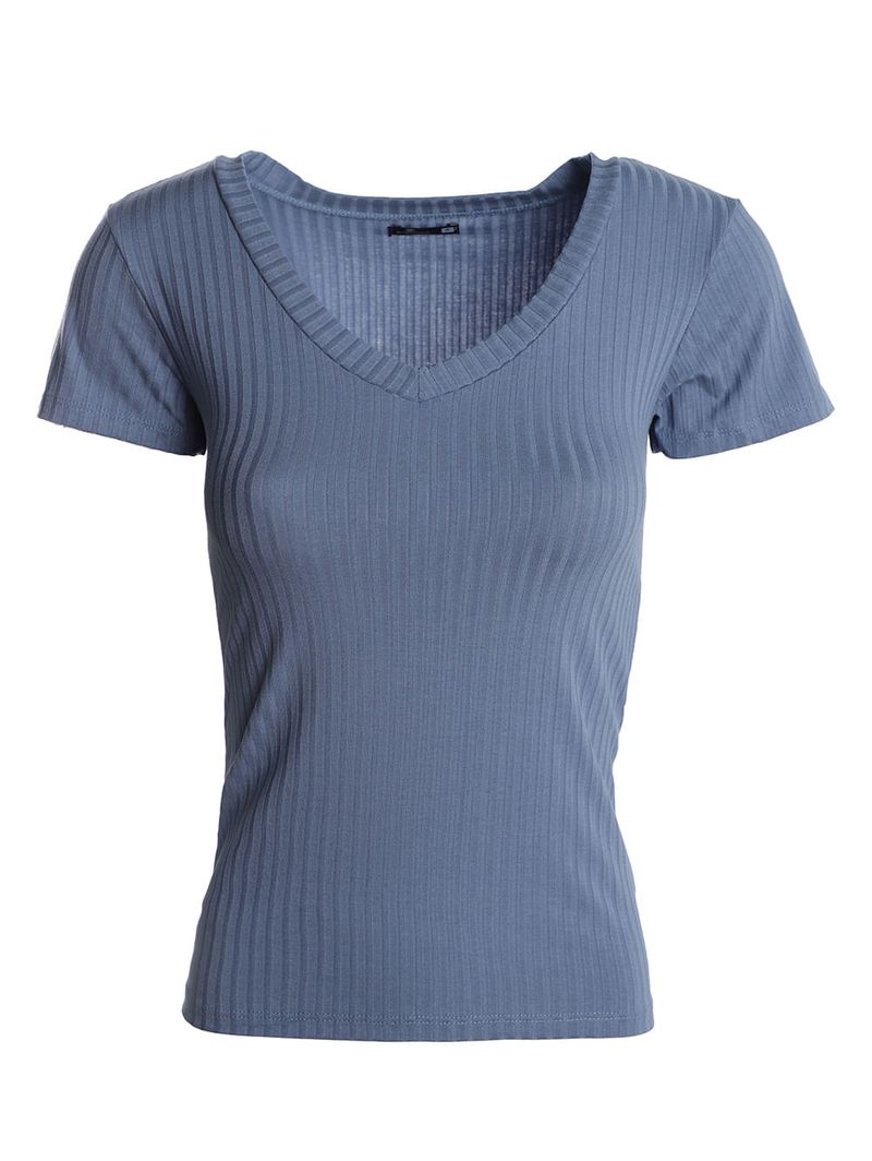 Blusa feminina desenvolvida em malha canelada leve de toque macio e confortável. Apresenta modelagem básica com caimento ajustado ao corpo, mangas curtas e decote em “V”. Peça super versátil, ideal para combinar com diversas peças, para diversas ocasiões. Aposte com Saia Jeans e Sandálias .