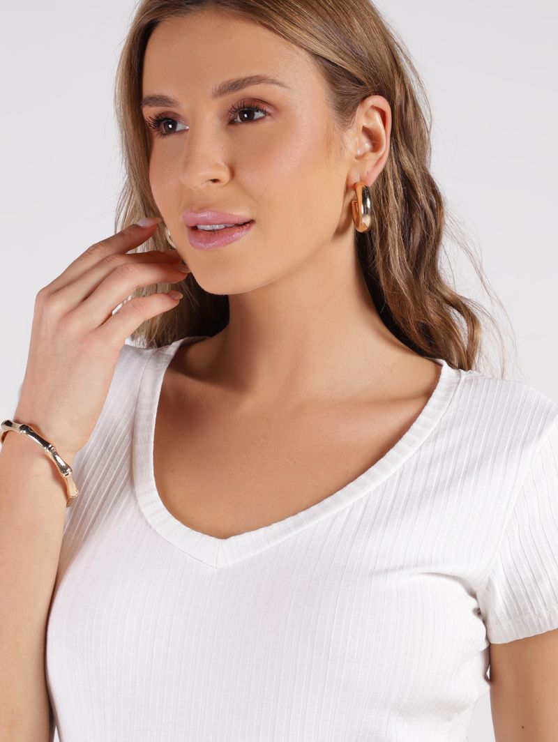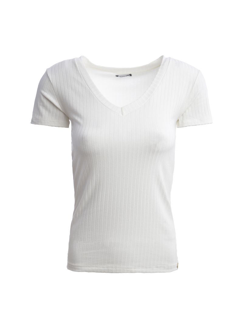 Blusa Manga Curta Canelada Autentique Feminina OFF WHITE