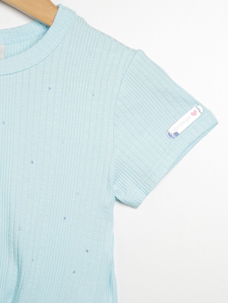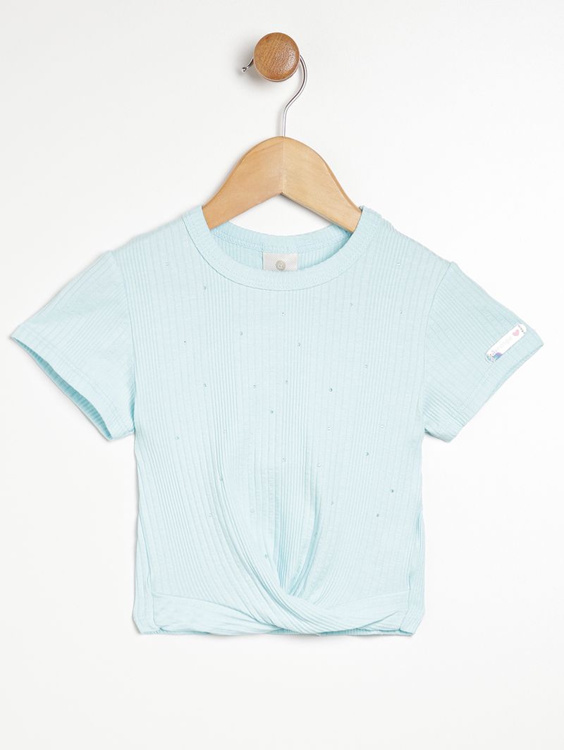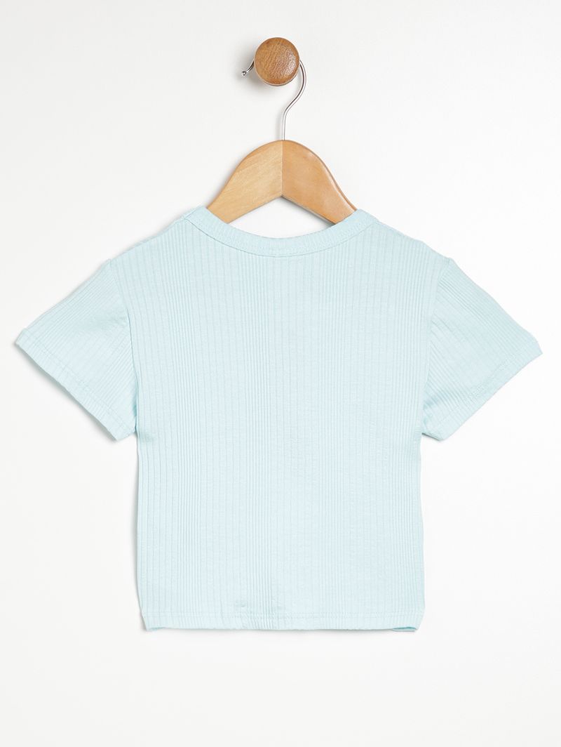 Blusa Manga Curta Canelada Infantil Para Menina AZUL