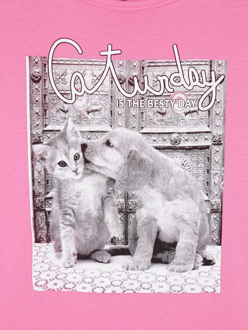 Blusa feminina desenvolvida em malha. Apresenta mangas curtas e decote redondo. A barra tem diferencial de parte posterior levemente alongada e acabamento simples. Blusa feminina desenvolvida em malha leve de viscose e elastano com toque macio. O modelo possui mangas curtas, decote redondo e diferencial de estampa frontal super fofa pets e escritas que agregam charme à peça. Apresenta caimento soltinho ao corpo e barra com o acabamento simples. Essencial para os seus looks de verão! Combine com Shorts de Tecido e Rasteiras.Tecido: Malha Mangas: Curtas Gola: Redonda Composição: 96% viscose, 04% elastano Marca: Rayra Medidas da modelo: 1,74 de altura, 60kg e usa tamanho P.