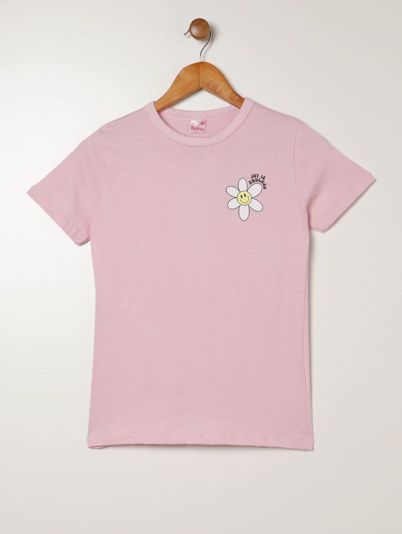 Blusa Manga Curta Juvenil Para Menina - ROSA