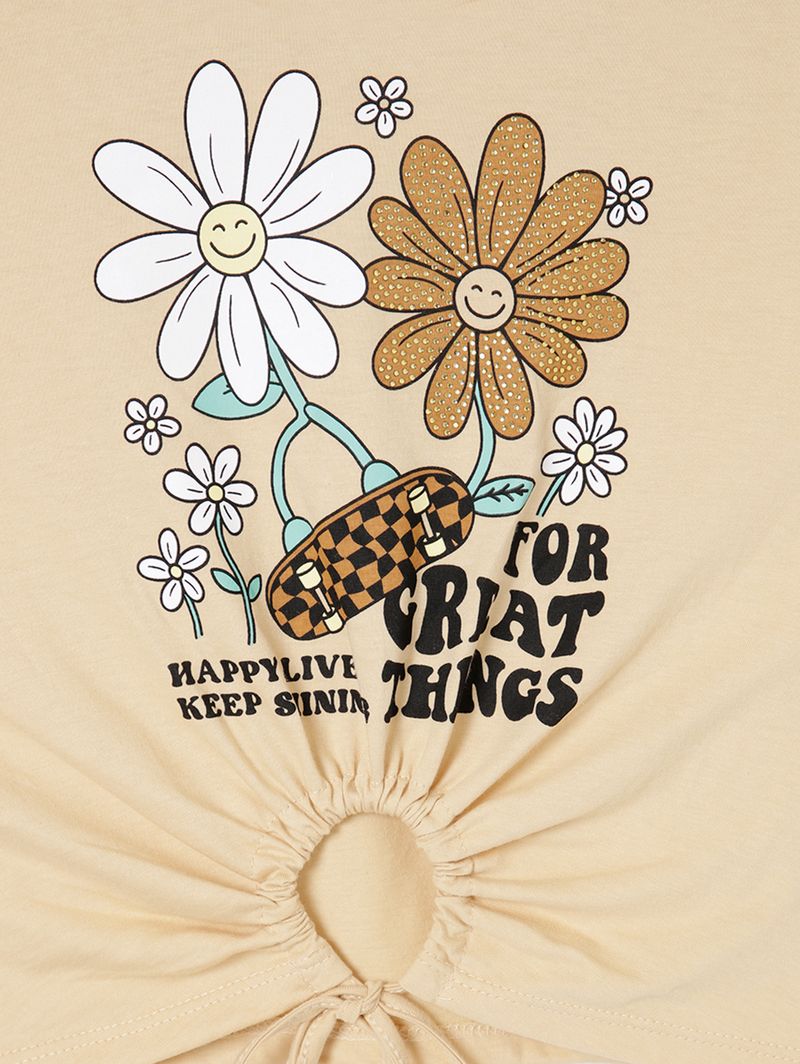 Blusa Manga Curta Juvenil Para Menina - Bege