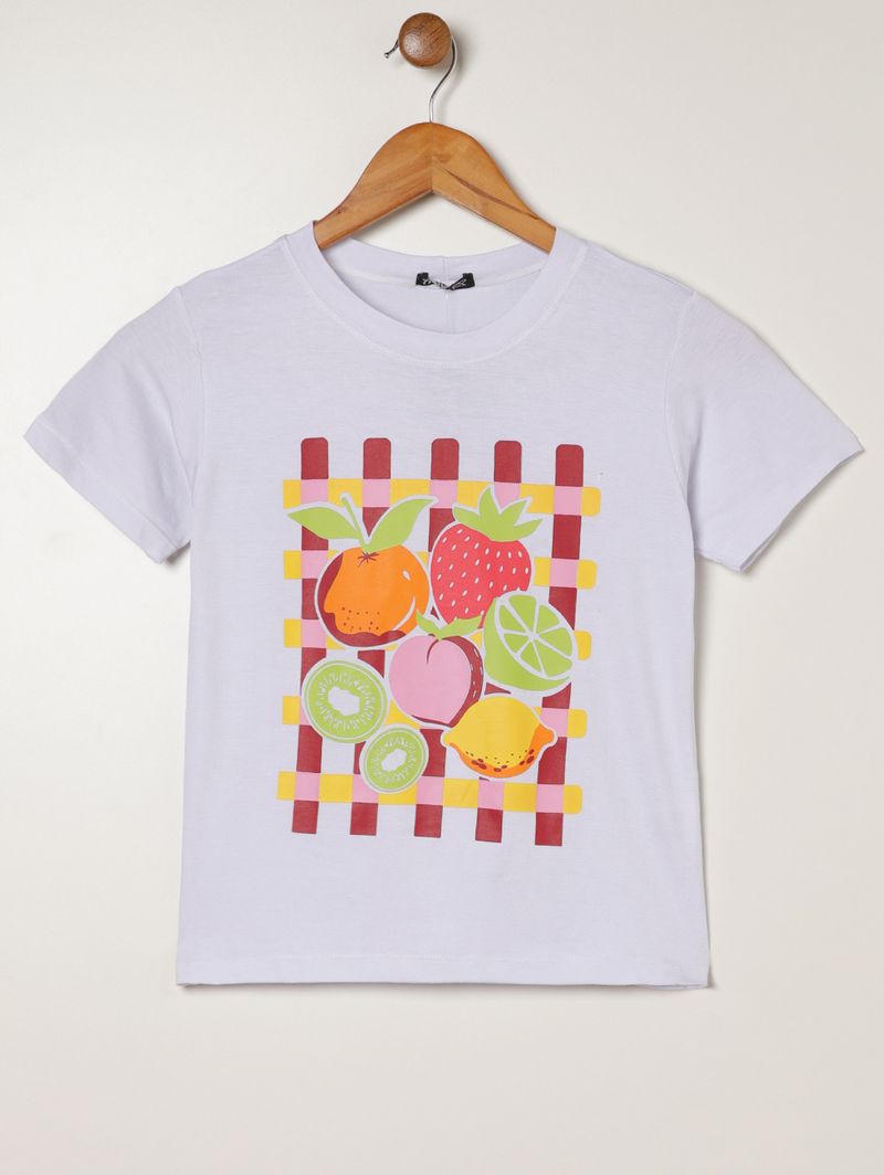 Blusa Manga Curta Juvenil Para Menina - BRANCO