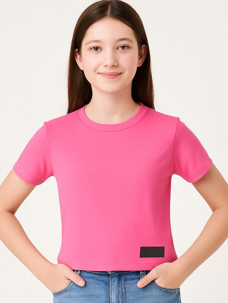 Blusa Manga Curta Juvenil Para Menina - Rosa Pink
