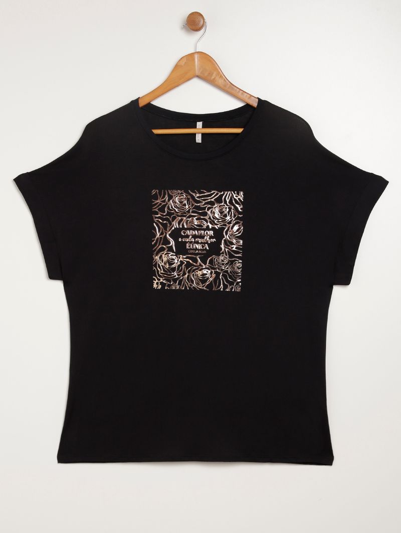 Blusa Manga Curta Plus Size Feminina PRETO