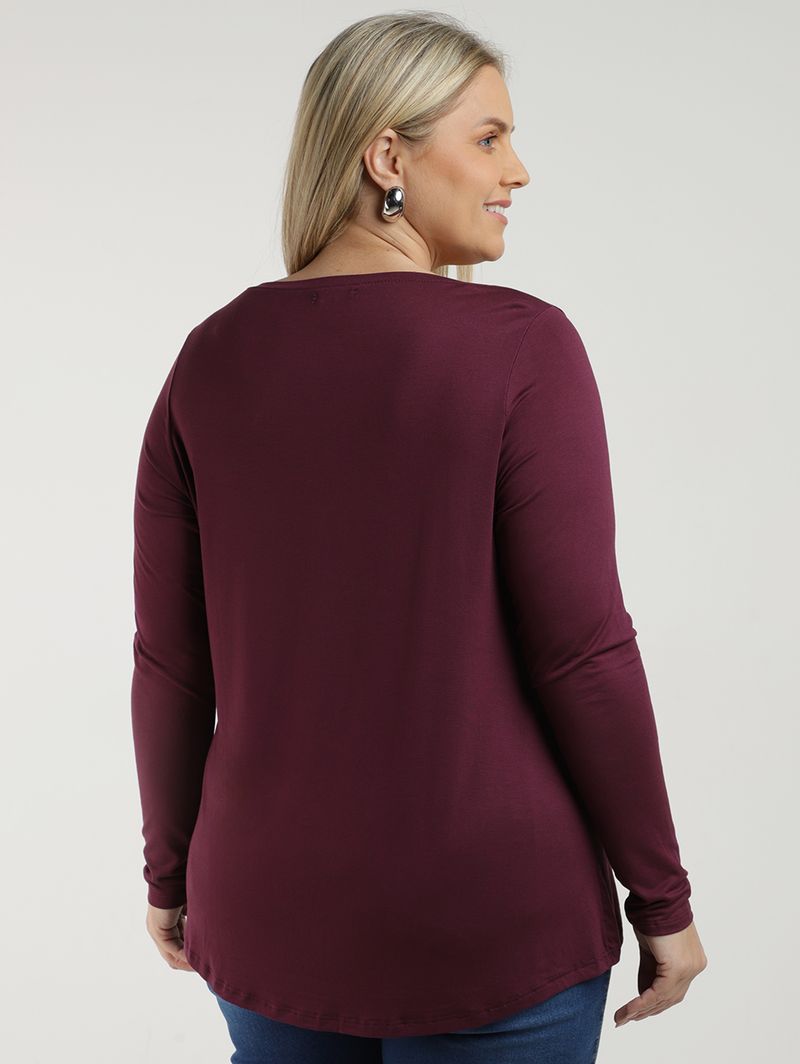 Blusa Manga Longa Autentique Plus Size Feminina BORDO/MARROM