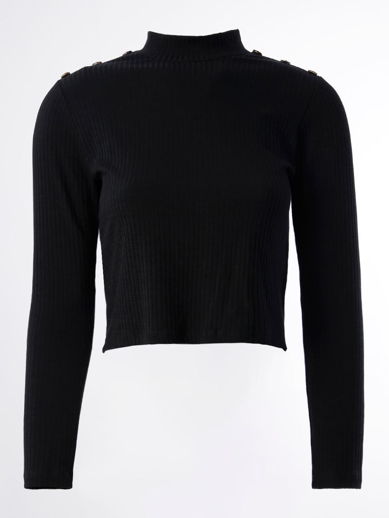 Blusa Manga Longa Cropped Feminina Preto