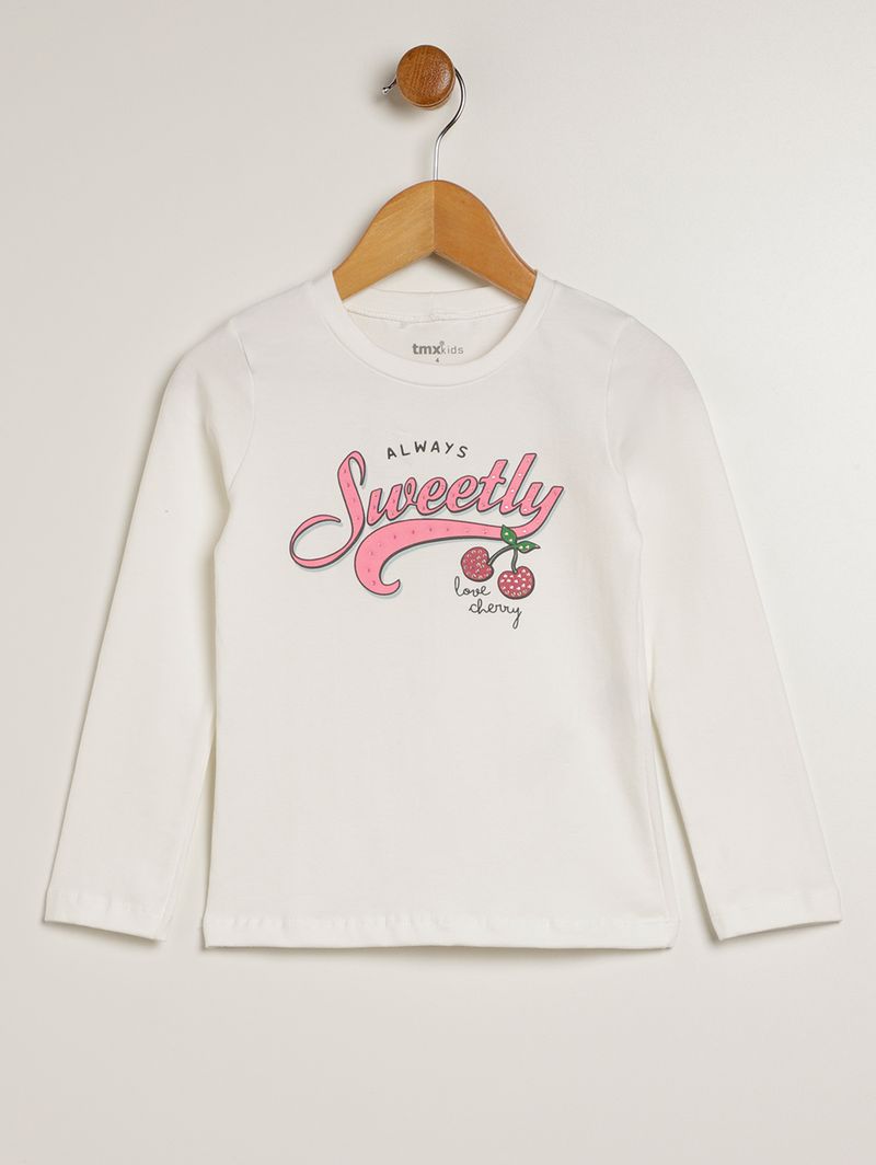 Blusa Manga longa Cereja Infantil Para Menina - BRANCO